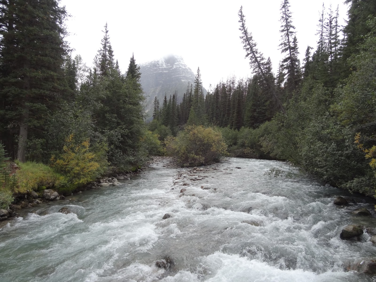 Before I left I'd been emailing about volunteering for Parks, because I'd heard Banff needed people to take photos of signage. I wasn't going anywhere they needed in Banff though. I asked if Jasper needed the same thing. Jasper told me that they didn't - but they needed something else: people to pick up bear scat. I was skeptical at first, but decided to do it. So they mailed me a kit to collect any scat I found. What you get in return, except knowing you helped Parks knowledge of bear movements etc., is a full report on the bear whose scat you picked up. It was with the volunteer coordinators help I got updated trail information from other Parks staff that the Middle Whirlpool River had moved, and therefore the bridge no longer spans the river. As well that there was a detour to a new river crossing to avoid the Kane Creek crossing. These two river crossings worried me some on the trip in, but they both turned out to be quite manageable despite the amount of rain we'd been having recently.